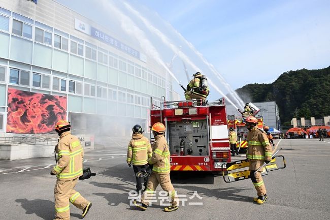 군청 재난안전상황실에서는 재난안전대책본부장인 심재국 평창군수가 주재해 실무부서와 유관기관별 협력·조치 방안에 대해 논의했으며, 현장훈련에서는 자위소방활동과 재난안전통신망(PS-LTE)을 통한 상황 보고·전파, 긴급구조통제단 가동, 통합지원본부 운영 등 재난대응 단계별 사고 수습 체계를 점검하는 데 중점을 뒀다.
