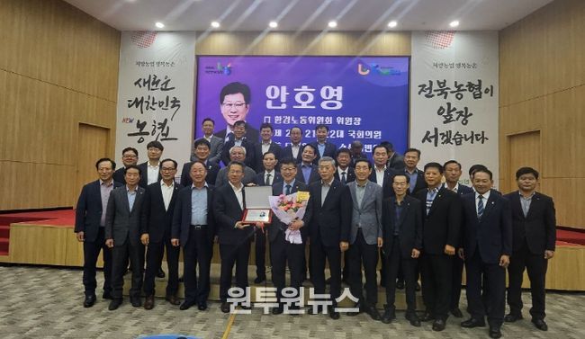 (원투원뉴스) 국회 기후에너지환경노동위원장 안호영 의원(전북 완주·진안·무주)은 10월 2일, 농협중앙회로부터 감사패를 수상했다고 밝혔다.