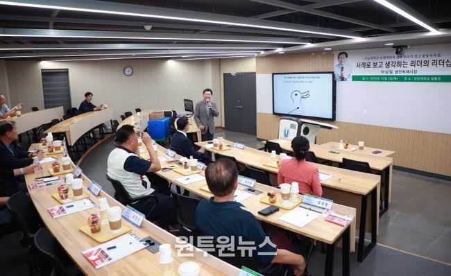 이 시장은 특강을 통해 리더의 판단력과 냉철함, 시대를 읽는 능력에 대한 중요성을 강조했다.