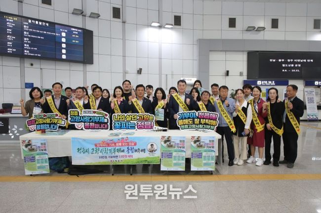 (원투원뉴스) 민족 대명절 추석을 맞아 고향을 찾은 귀성객들을 위한 따뜻한 환영 행사가 정읍역 광장을 훈훈하게 물들였다.