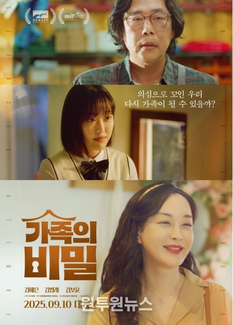 (원투원뉴스) 제2회 4.16재단 문화콘텐츠 공모전 대상작 <가족의 비밀>이 10월 2일(목) 바로 오늘부터 극장 동시 IPTV & VOD 서비스를 시작한다.[감독/각본: 이상훈 | 출연: 김혜은, 김법래, 김보윤 | 제작: ㈜이엔터테인먼트, ㈜오예스 | 배급: ㈜스튜디오 디에이치엘]