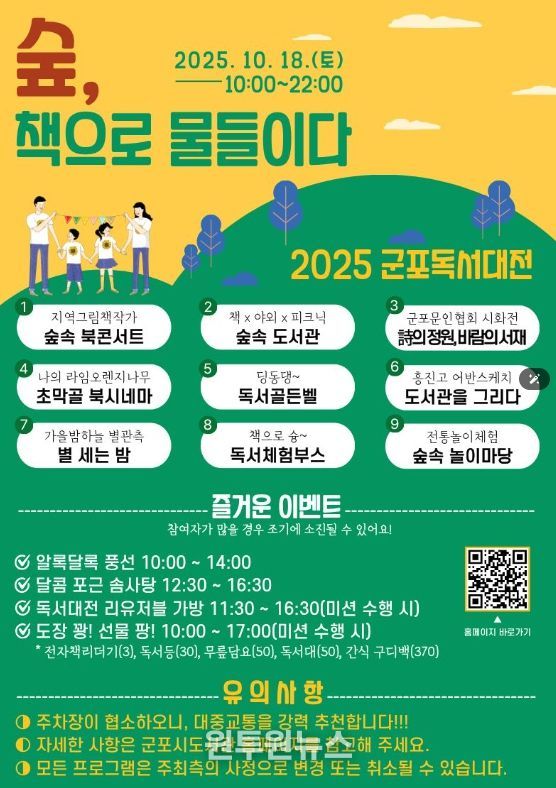하은호 군포시장은 “올해 독서의 달 행사는 책 읽는 즐거움을 넘어 예술과 체험이 어우러진 복합 문화축제로 시민들과 함께 했다”며 “오는 10월 17~18일 군포올래 행복축제 기간에 초막골 생태공원에서 열리는 군포독서대전에서도 시민들이 책과 가까워지고 다양한 독서문화 프로그램을 즐길 수 있도록 풍성한 행사를 준비하고 있다”며 많은 관심과 참여를 당부했다.