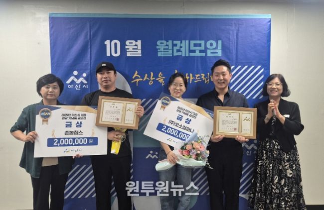 (원투원뉴스) 아산시는 2일 시청 시민홀에서 열린 10월 월례모임에서 2025 아산시 대표관광기념품 공모전 금상 수상작 2점을 시상했다고 밝혔다.