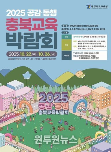 (원투원뉴스) 충청북도교육청은 오는 10월 22일부터 26일까지 5일간 청주시 주중동 소재 교육문화원과 생명누리공원 일대에서 2025 공감‧동행 충북교육박람회를 개최한다고 밝혔다.