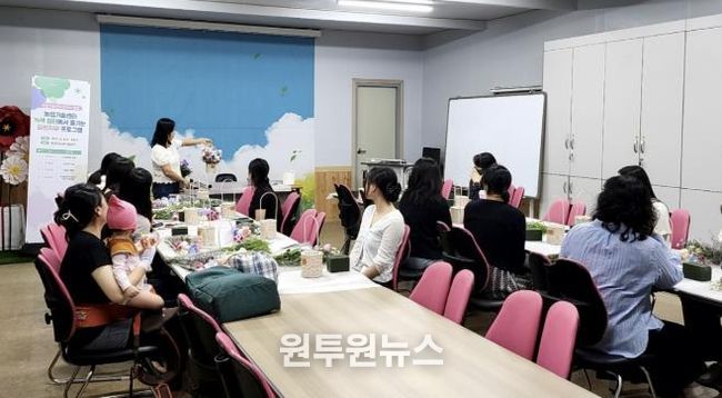 아로마테라피를 활용한 손세정제 만들기, 감성 꽃바구니 제작, 수납정리 실습, 치유쉼터에서의 기타 공연 등 다채로운 프로그램이 운영돼 참여자들의 높은 만족을 이끌어냈다.