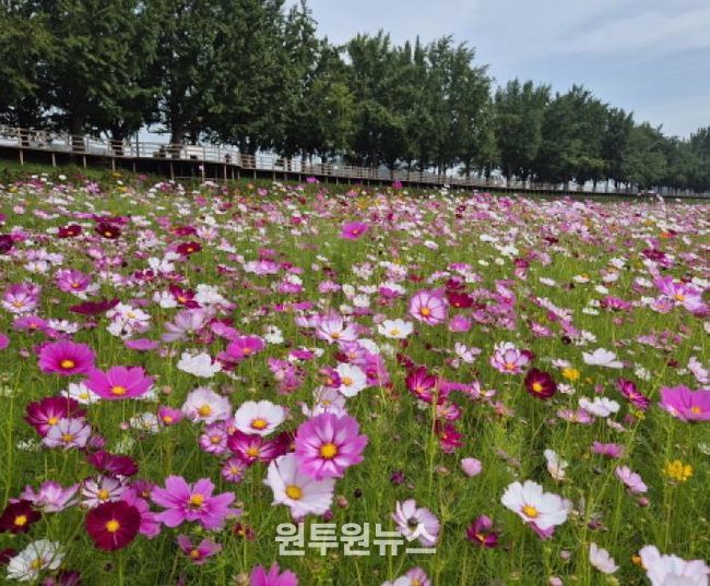 (원투원뉴스) 아산시가 곡교천 방문객에게 휴식공간과 볼거리를 제공하기 위해 조성한 ‘곡교천 가을 초화원’이 가을꽃으로 아름답게 물들었다고 밝혔다.