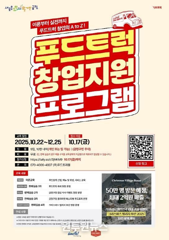 이번 프로그램을 통해 4차 현장 교육 시에는 '크리스마스 빌리지 부산 2025'에 입점할 수 있는 파격 기회가 주어지며 이 교육에 참여할 대상자는 금정구 창업지원시설인 푸드앤파크에 사업자등록을 완료해야 한다.