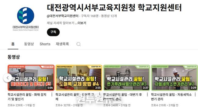 (원투원뉴스) 대전서부교육지원청은 학교 시설관리의 전문성과 효율성을 높이기 위해 학교지원센터 시설관리 주무관의 노하우가 담긴 교육 영상을 유튜브를 통해 제공한다고 밝혔다.