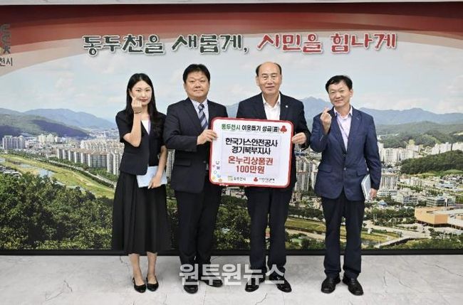 (원투원뉴스) 한국가스안전공사 경기북부지사는 추석 명절을 맞아 지난 9월 30일 동두천시청을 방문, 저소득 가정을 위해 온누리상품권 100만 원을 기탁했다.