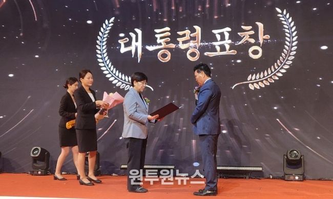 (원투원뉴스) 공주시 신풍면 민경대 명예면장이 지난 2일 서울 롯데호텔에서 열린 제29회 노인의 날 기념식에서 대통령상을 받았다.