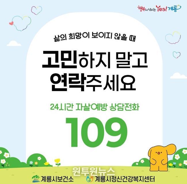 (원투원뉴스) 계룡시는 ‘행복이 넘치는 Yes! 계룡’ 구현을 위해 건강하고 행복한 계룡시를 위한 다양한 자살 예방 사업을 펼치고 있다.