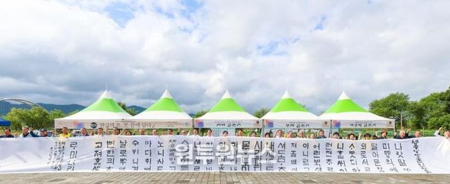 이날 행사에는 지역 서예인과 군민, 관광객 등 100여 명이 참여해 한글의 창제 의미를 함께 나누었다.