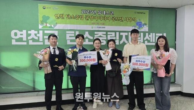 (원투원뉴스) 연천군 탄소중립지원센터는 지난 9월 19일, ‘유네스코 연천 탄소중립 군정 아이디어 공모전’ 시상식을 개최했다. 이번 공모전은 기후 위기 극복과 탄소중립 실현을 위한斬신하고 실천 가능한 군정 아이디어를 발굴하기 위해 추진됐다.