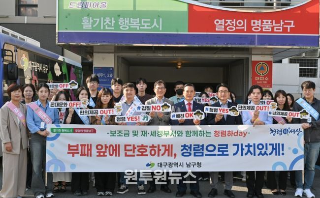 (원투원뉴스) 대구 남구는 지난 10월 1일 보조금 및 재·세정 부서 합동 청렴 캠페인을 실시했다고 밝혔다.