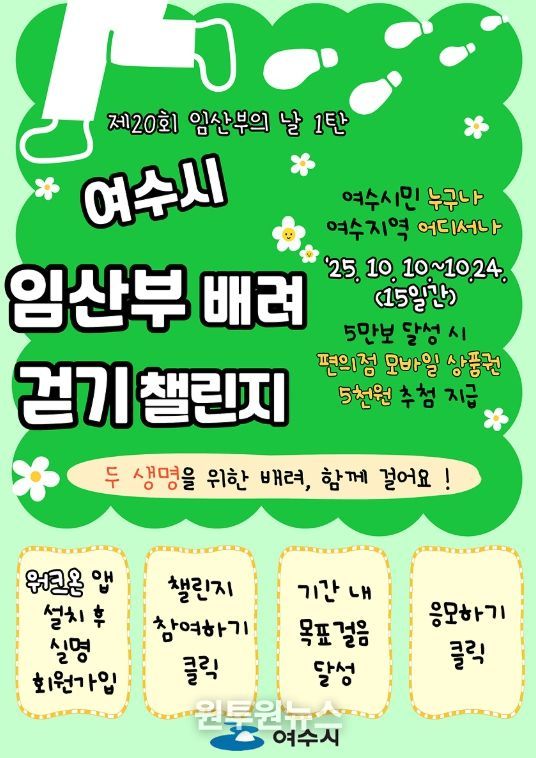 여수시 관계자는 “이번 행사를 통해 임신과 출산의 소중함을 다시 한번 되새기고 임산부를 배려하는 문화가 더욱 확산되기를 기대한다”며 “앞으로도 임산부가 안심하고 출산할 수 있는 환경 조성을 위한 노력을 아끼지 않겠다”고 말했다.