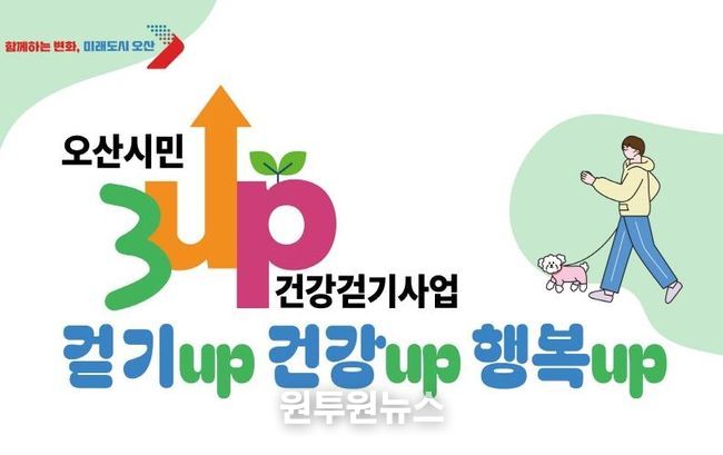 (원투원뉴스) 오산시는 10월부터 12월 31일까지 시민들의 꾸준한 건강관리를 돕기 위해 ‘3UP 건강걷기 챌린지’를 연말까지 운영한다고 밝혔다.