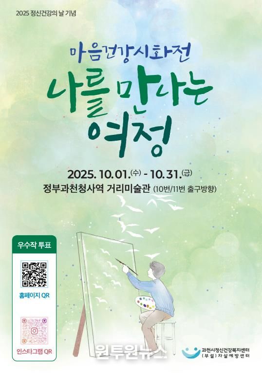안영미 과천시정신건강복지센터 부설 자살예방센터장은 “이번 시화전이 시민들이 나 자신과 서로를 이해하는 계기가 되길 바란다”라며, “앞으로도 정신건강 인식 개선과 회복 지원을 위해 다양한 노력을 이어가겠다”라고 말했다.