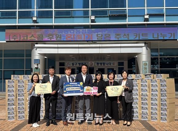 ㈜코스콤은 이번 전달식을 통해 총 1,000만 원을 후원했으며, 이를 바탕으로 동구 내 취약계층 250세대에 세대당 4만 원 상당(사과, 배, 찹쌀, 튀김가루, 참치, 햄, 식혜, 계란, 카놀라유, 약과 총 10종)의 추석맞이 물품 키트를 지원했다.