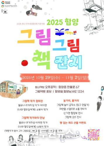 (원투원뉴스) 함양의 독립서점 오후공책과 그림책방 퐁당(대표 유희정)이 공동으로 준비한 그림책 축제 '그림그림 책잔치'가 10월 29일부터 11월 2일까지 열린다.