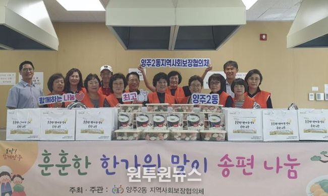 (원투원뉴스) 양주시 양주2동 지역사회보장협의체가 최근 추석을 맞아 관내 취약계층 100가구를 대상으로 송편을 전달했다.