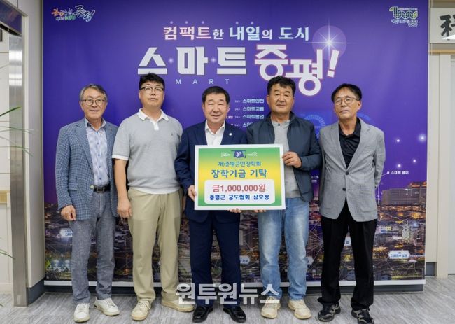 (원투원뉴스) 충북 증평군 궁도협회 ‘삼보정’(회장 최준경)은 10일 군청을 찾아 지역의 우수 인재 양성을 위해 써달라며 (재)증평군민장학회에 장학금 100만원을 기탁했다.