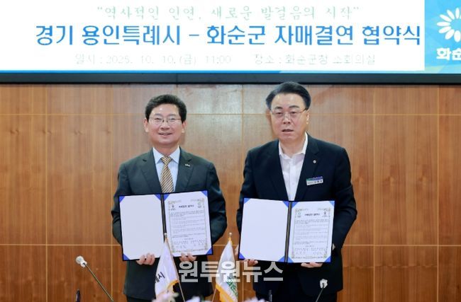 (원투원뉴스) 용인특례시는 10일 전라남도 화순군과 자매결연을 체결하고 두 도시의 교류와 발전을 위해 적극 협력키로 했다.