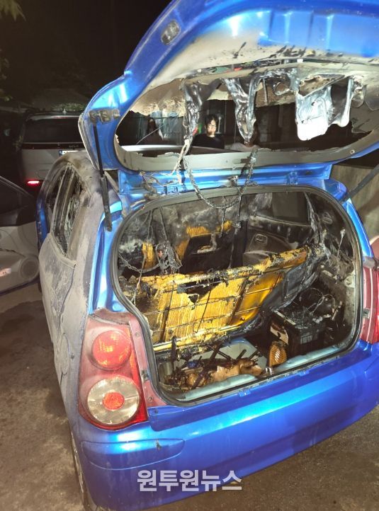화재 당시 신고자는 차량에서 연기가 피어오르는 것을 발견하고 즉시 119에 신고한 뒤, 가정에 비치된 분말소화기를 이용해 침착하게 초기 화재를 진화했다.
