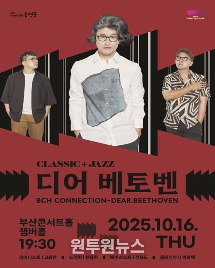 (원투원뉴스) 클래식부산은 오는 10월 16일 저녁 7시 30분 챔버홀에서 ▲피아니스트 고희안 ▲드럼 한웅원 ▲베이스 정용도와 클래식부산 오케스트라 수석들이 주축이 된 '부산콘서트홀 커넥션-디어 베토벤'의 공연을 개최한다고 밝혔다.