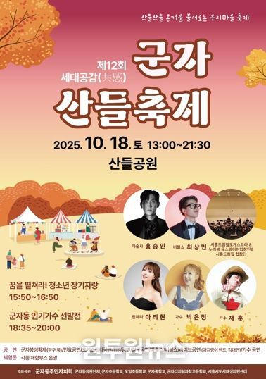 (원투원뉴스) 시흥시 군자동 주민자치회는 오는 10월 18일 오후 1시부터 거모동 산들공원에서 ‘제12회 세대공감(共感) 군자 산들축제’를 개최한다.
