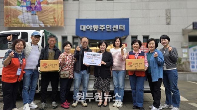 (원투원뉴스) 시흥시 대야동 통장협의회는 지난 10월 10일 대야동 주민센터에서 지역 취약계층을 위한 고구마 40상자(500kg) 전달식을 열었다. 이번 나눔은 지역 사회 돌봄의 공백을 줄이고, 따뜻한 명절 분위기를 어려운 이웃들과 나누기 위해 마련됐다.