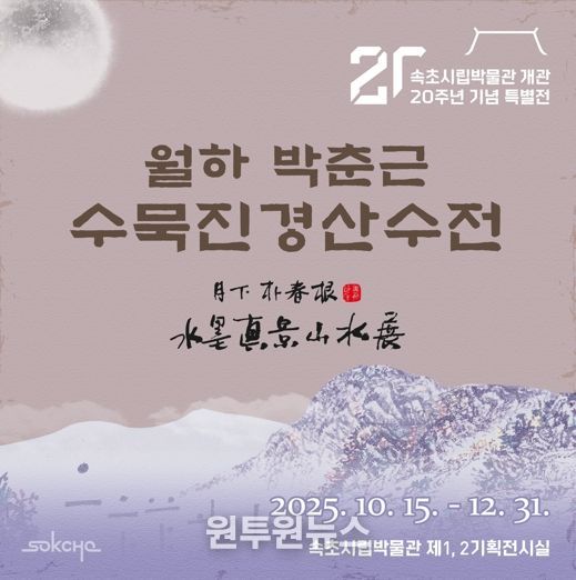 (원투원뉴스) 속초시립박물관이 개관 20주년을 맞아 월하 박춘근 ‘수묵진경산수전’을 10월 15일부터 12월 31일까지 연다. 이번 전시는 평생을 한국화 연구와 창작에 바친 고(故) 월하 박춘근 화백의 기증 작품을 시민에게 선보이는 자리다.