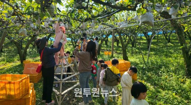 가을철 배, 감 등 잘 익은 농산물을 직접 수확하는 체험도 가능하다.