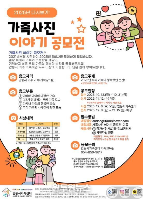 (원투원뉴스) 안동시는 가족의 소중한 추억을 되새기기 위한 『2025년 다시보기! 가족사진 이야기 공모전』을 개최한다.