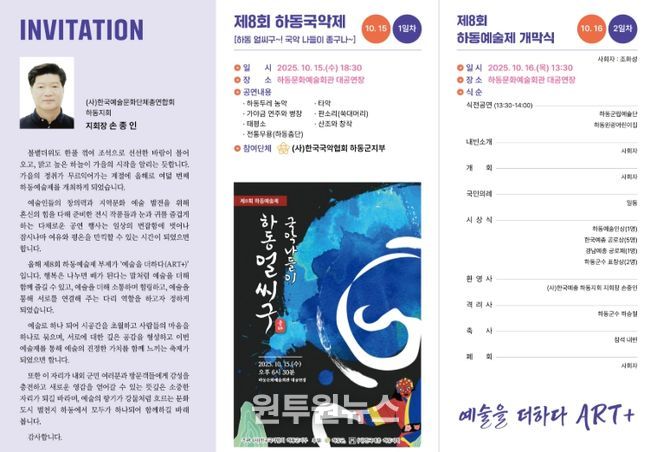 (원투원뉴스) ‘제8회 하동예술제’가 10월 15일~17일 3일간 하동문화예술회관 일원에서 개최된다.
