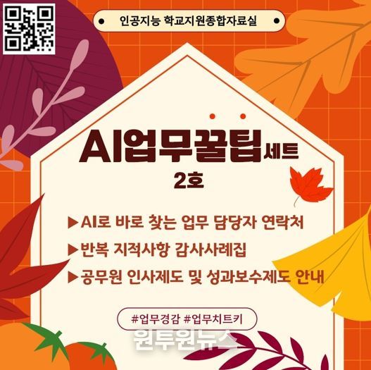 (원투원뉴스) 경북교육청은 학교 현장의 업무 부담을 줄이고 행정의 효율성을 높이기 위해 ‘AI 업무꿀팁세트 2호’를 경상북도교육청 학교지원종합자료실을 통해 배포했다고 13일 밝혔다.