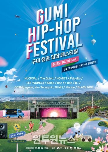 (원투원뉴스) 구미시는 오는 10월 18일 동락공원에서 청춘들의 열정과 힙합 음악이 어우러지는 '2025 구미청춘힙합페스티벌'을 개최한다. 이번 공연은 오후 3시 30분부터 밤 10시까지 진행되며, 전석 무료(스탠딩존)로 선착순 입장할 수 있다.