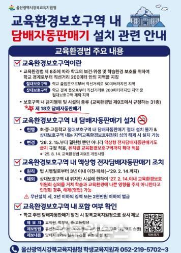 (원투원뉴스) 울산 강북교육지원청은 교육환경보호구역 내 담배자동판매기 관리를 한층 강화한다.