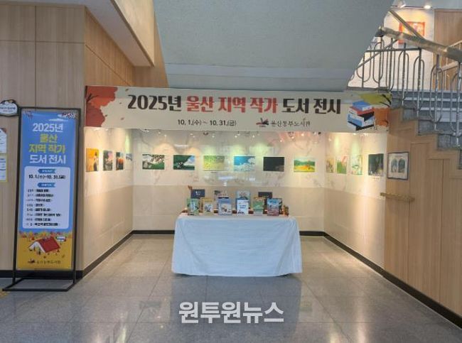 (원투원뉴스) 울산 동부도서관은 오는 31일까지 1층 로비에서 울산 지역 작가들의 도서 15권과 원화 14점을 전시한다.