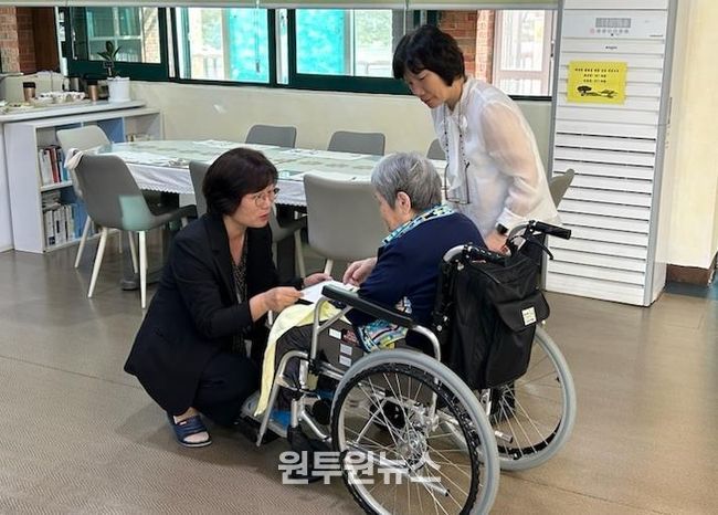 (원투원뉴스) 수원시 장안구 정자3동 행정복지센터는 지난 30일, 노인주거복지시설 ‘아녜스의 집’ 거주 어르신들을 대상으로 '민생회복 소비쿠폰' 찾아가는 신청 서비스를 실시했다.