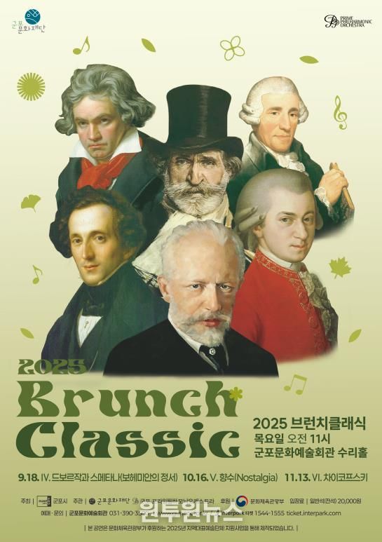(원투원뉴스) 군포문화재단은 오는 10월 16일 오전 11시, 군포문화예술회관 수리홀에서 ‘2025 브런치클래식’의 다섯 번째 공연을 개최한다.