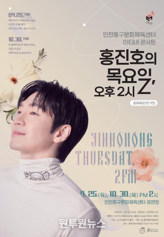 (원투원뉴스) 인천 동구문화체육센터는 마티네 콘서트 '목요일, 오후 2시' 두 번째 무대를 오는 30일 오후 2시 동구문화체육센터 공연장에서 개최한다고 밝혔다.
