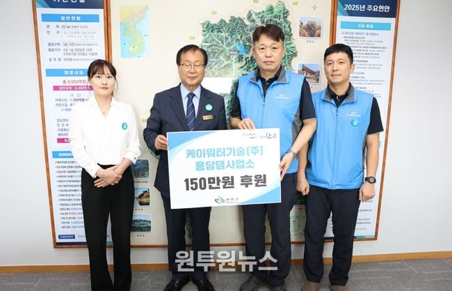 (원투원뉴스) 케이워터기술(K-water Tech) 용담댐사업소가 완주군에 이웃을 돕기 위한 성금 150만 원을 전달했다.