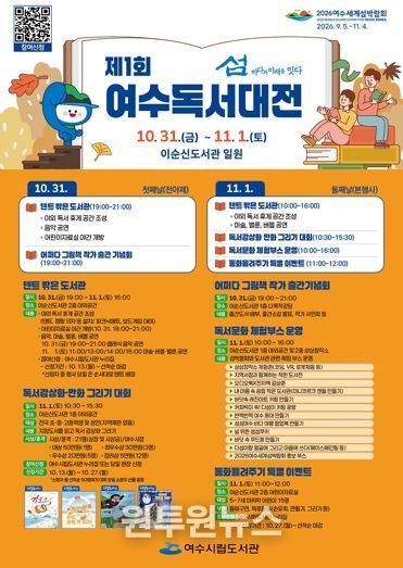 (원투원뉴스) 여수시는 오는 10월 31일부터 11월 1일까지 이틀간 이순신도서관 일원에서 ‘제1회 여수독서대전’을 개최한다.