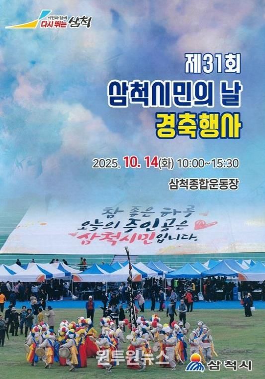 (원투원뉴스) 삼척시민의 단결과 화합, 애향심과 자긍심을 고취하기 위한 제31회 삼척시민의 날 기념 경축 행사가 오는 10월 14일 오전 10시 삼척종합운동장에서 열린다.