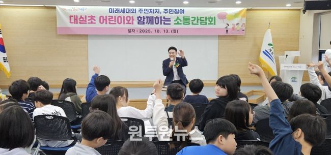 (원투원뉴스) 계룡시는 13일, 대실초등학교 4학년 학생 80여 명을 시청으로 초청해 ‘대실초 어린이와 함께하는 소통간담회’를 개최했다고 밝혔다.
