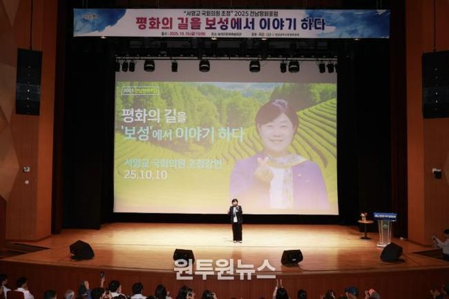 (원투원뉴스) 보성군은 지난 10일 보성군문화예술회관에서 개최된 ‘서영교 국회의원 초청 2025 전남평화포럼’이 군민 700여 명이 참석한 가운데 성황리에 마무리됐다고 밝혔다.