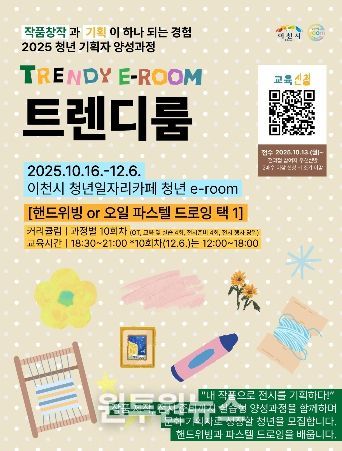 ▲오일파스텔 드로잉 ▲핸드위빙으로 구성하여 예술 작품 제작 및 전시를 준비 및 운영함으로써 문화 기획과 창작 역량을 동시에 강화하는 본 과정은 19세 이상 39세 이하 관내 청년이면 누구나 10월 13일부터 큐알(QR)코드를 통해 신청할 수 있다.