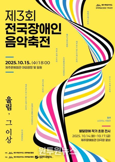 (원투원뉴스) 제주특별자치도 문화예술진흥원은 오는 15일 오후 6시 문예회관 광장에서 ‘제3회 전국장애인 음악 축전’을 개최한다.