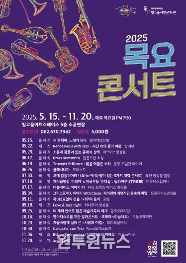 (원투원뉴스) 광주문화재단(대표이사 노희용)은 오는 10월 16일, 23일, 30일 목요일 저녁 7시 30분, 빛고을아트스페이스 5층 소공연장에서 ‘10월의 목요콘서트’를 개최한다고 밝혔다.