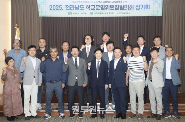 (원투원뉴스) 전라남도교육청은 10월 13일 나주 듀플렉스 호텔에서 도내 22개 지역 학교운영위원장협의회 대표 위원장들이 참석한 가운데 ‘2025. 전라남도 학교운영위원장협의회 정기회’를 열었다.